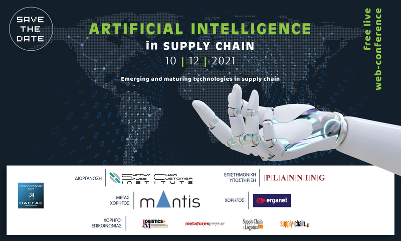Το Artificial Intelligence (τεχνητή νοημοσύνη) αποτελεί ένα εργαλείο που έχει όλο και περισσότερες εφαρμογές στις εφοδιαστικές αλυσίδες και τα logistics. Το συνέδριο που διοργανώνει το Suppy Chain Institute με την επιστημονική υποστήριξη της Planning στις 10 Δεκεμβρίου, θα παρουσιάσει τις αναδυόμενες τεχνολογίες, εστιάζοντας στο Αrtificial Intelligence και αναλύοντας τις βασικότερες εφαρμογές του στο Supply Chain και στα Logistics. Διεθνείς και Έλληνες ομιλητές, experts και στελέχη εφοδιαστικής αλυσίδας θα μοιραστούν με το ακροατήριο σε ένα free, live on-line event την πρακτική εμπειρία τους, case studies και τα οφέλη που αποκόμισαν χρησιμοποιώντας εφαρμοσμένες τεχνολογίες τεχνητής νοημοσύνης.