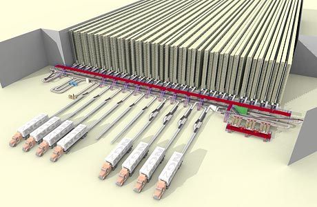 Η άμεση διανομή ταχυκίνητων προϊόντων με σύντομο κύκλο ζωής (νωπά τρόφιμα, κοτόπουλα, αυγά, φρέσκα ψάρια και γαλακτοκομικά), με ελεγχόμενη θερμοκρασία με τη μέθοδο cross-docking απαιτεί τη διαθεσιμότητα σημαντικού χώρου φόρτωσης και μεγάλο αριθμό ραμπών. Φωτογραφία Vanderlande Industries B.V., Ολλανδία