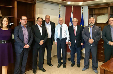 Με αμοιβαίες υποσχέσεις συνεργασίας πραγματοποιήθηκε στο Υπουργείο Ναυτιλίας και Νησιωτικής Πολιτικής η συνάντηση αντιπροσωπείας του Δ.Σ. του Ε.Ε.ΣΥ.Μ., υπό τον πρόεδρό του, κ. Μιχάλη Αδαμαντιάδη, με το νέο Υπουργό Ναυτιλίας και Νησιωτικής Πολιτικής, κ. Φώτη Κουβέλη. Στη συνάντηση, που έγινε στις 27 Σεπτεμβρίου, παρουσία και του Γενικού Γραμματέα Λιμένων, Λιμενικής Πολιτικής και Ναυτιλιακών Επενδύσεων κ. Χρήστου Λαμπρίδη, συμμετείχαν και οι κ.κ. Παρασκευάς Φραντζέσκος, Αντιπρόεδρος Επιμελητηρίου Λέσβου και Ε.Ε.ΣΥ.Μ., Απόστολος Καμαρινάκης, Υποναύαρχος Λ.Σ. (ε.α.) και Γενικός Γραμματέας Ε.Ε.ΣΥ.Μ., Νικόλαος Κουλός, Αντιπρόεδρος Επιμελητηρίου Φωκίδας και Αν. Οικονομικός Επόπτης Ε.Ε.ΣΥ.Μ., Μιχάλης Σακέλλης, Πρόεδρος ΣΕΕΝ και Μέλος ΔΣ Ε.Ε.ΣΥ.Μ. και Χριστίνα Χατζή, υπεύθυνη γραμματείας του Συνδέσμου.