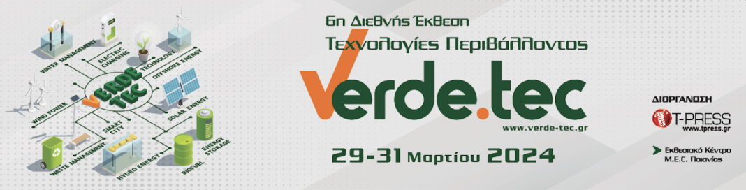 Η πλέον εξειδικευμένη έκθεση για το Περιβάλλον, την Κυκλική Οικονομία και τις Έξυπνες Πόλεις στην Ελλάδα, η 6η διεθνής έκθεση Verde.tec / Τεχνολογίες Περιβάλλοντος ξεκινά αύριο Παρασκευή, 29 Μαρτίου 2024, στις 10:00 το πρωί! Το απόλυτο σημείο συνάντησης του κλάδου θα πραγματοποιηθεί στο MEC Παιανίας και θα ολοκληρωθεί την Κυριακή 31 Μαρτίου, στις 19:00 το βράδυ.