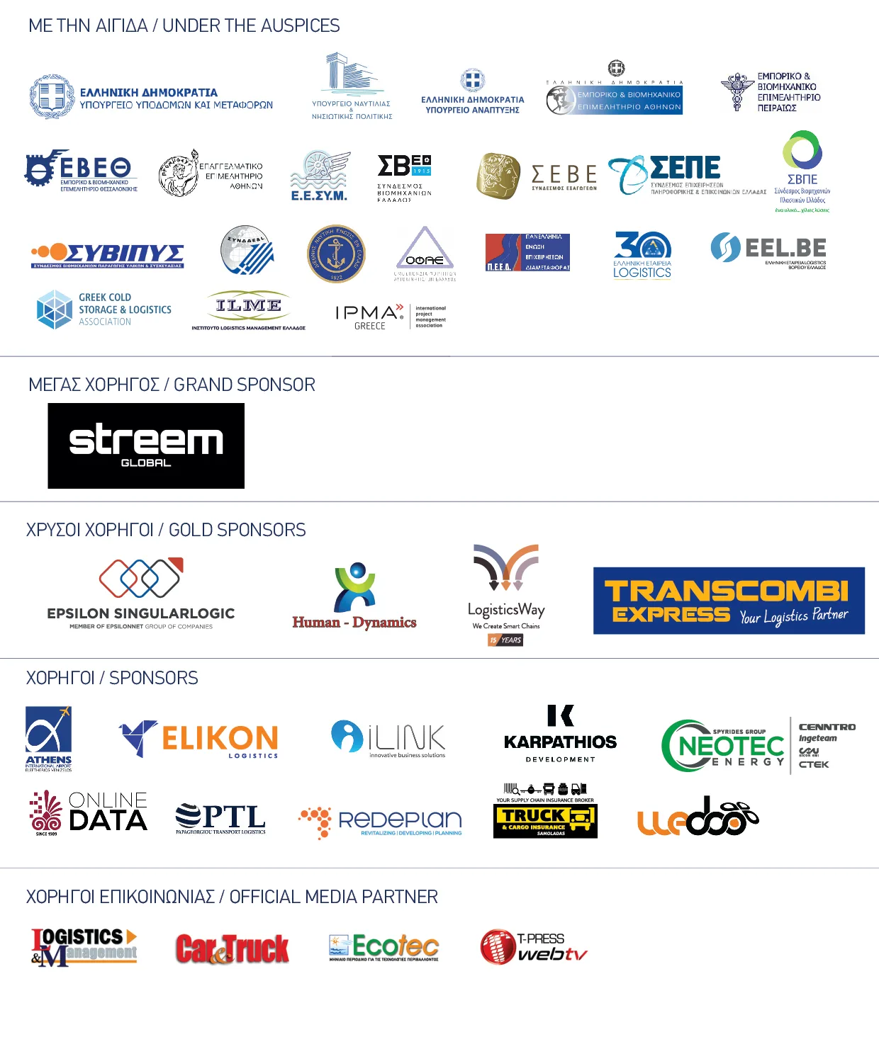Με την αιγίδα 3 υπουργείων (Ανάπτυξης, Υποδομών & Μεταφορών, Ναυτιλίας & Νησιωτικής Πολιτικής), 4 επιμελητηρίων (ΕΒΕΑ, ΕΒΕΘ, ΕΒΕΠ, ΕΕΑ) και 15 κορυφαίων φορέων εκπροσώπησης της ελληνικής επιχειρηματικότητας και του κλάδου των Logistics, η δεύτερη διοργάνωση των Αναπτυξιακών Συνεδρίων Green Transport & Logistics «Navigating the Future» φέρνει και πάλι στο τραπέζι του διαλόγου τα ηγετικά στελέχη της ελληνικής αγοράς, τους θεσμικούς παράγοντες και διακεκριμένους επιστήμονες.