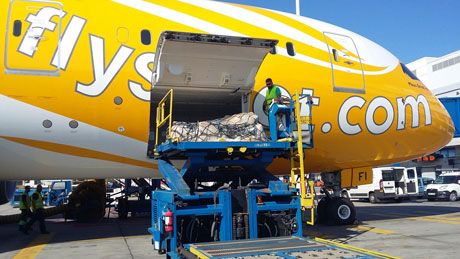 1) Εάν πρόκειται για χύδην φορτίο, που συνήθως μεταφέρεται με επιβατικά αεροσκάφη στενής ατράκτου [narrow body aircraft]), η εκφόρτωση εμπορευμάτων γίνεται από το αμπάρι του αεροσκάφους.