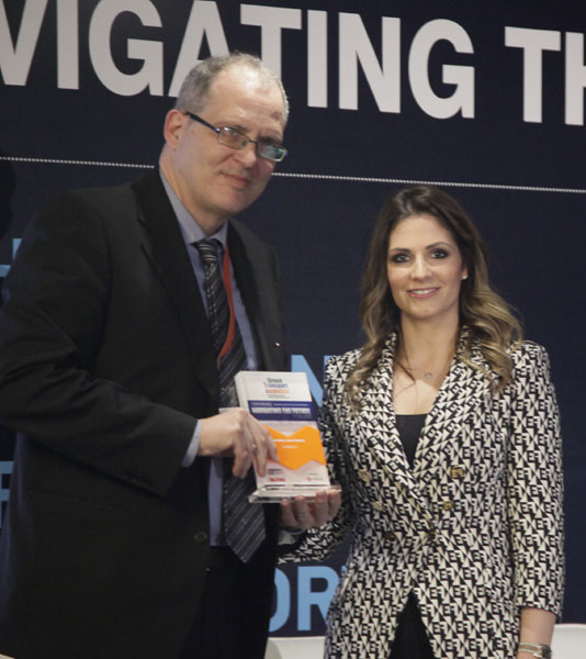 Τα βραβεία απένειμαν η PR Manager της T-Press κ. Ζέτα Φούντα Μουρτά και ο επιστημονικός σύμβουλος του συνεδρίου, πρώην πρόεδρος της EEL και πρόεδρος και διευθύνων σύμβουλος της Online Data κ. Νίκος Ροδόπουλος.