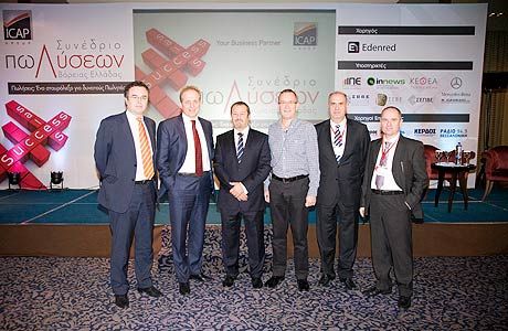 Οι ομιλητές του συνεδρίου πωλήσεων της ICAP στη Θεσσαλονίκη: (από αριστερά): Dr. Leslie T. Szamosi, Νικήτας Κωνσταντέλλος, Tony Hughes, Martin Stiven, Γιώργος Χάρος, Βασίλης Παπαχρήστος.