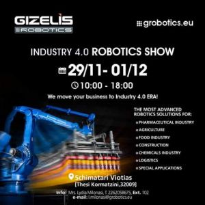 Τις εγκαταστάσεις της στο Σχηματάρι ανοίγει για το κοινό από τις 29/11 έως την 1η/12 η Gizelis Robotics, πλαισιώνοντας με αυτήν την πρωτοποριακή πρωτοβουλία τη μοναδική εμπειρία του INDUSTRY 4.0 ROBOTICS SHOW που διοργανώνει η ίδια με μεγάλη επιτυχία.
