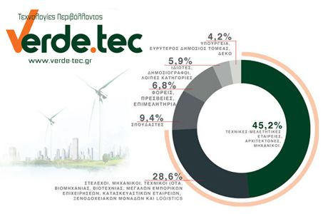 Δεν είναι τυχαίο ότι κατά τη διάρκεια του “Verde.Tec Forum” παρουσίασαν εισηγήσεις επιστηµονικού χαρακτήρα 82 διακεκριµένοι οµιλητές από την Ελλάδα και το εξωτερικό, απέναντι σε εκατοντάδες συνέδρους και δεκάδες οικονοµικούς και επιχειρηµατικούς συντάκτες. Στη διεθνή έκθεση “Verde.Tec” για τις Τεχνολογίες Περιβάλλοντος που διοργανώθηκε στο MEC συµµετείχαν ως εκθέτες, οι εταιρείες των οποίων δραστηριοποιούνται στις εξής κατηγορίες: